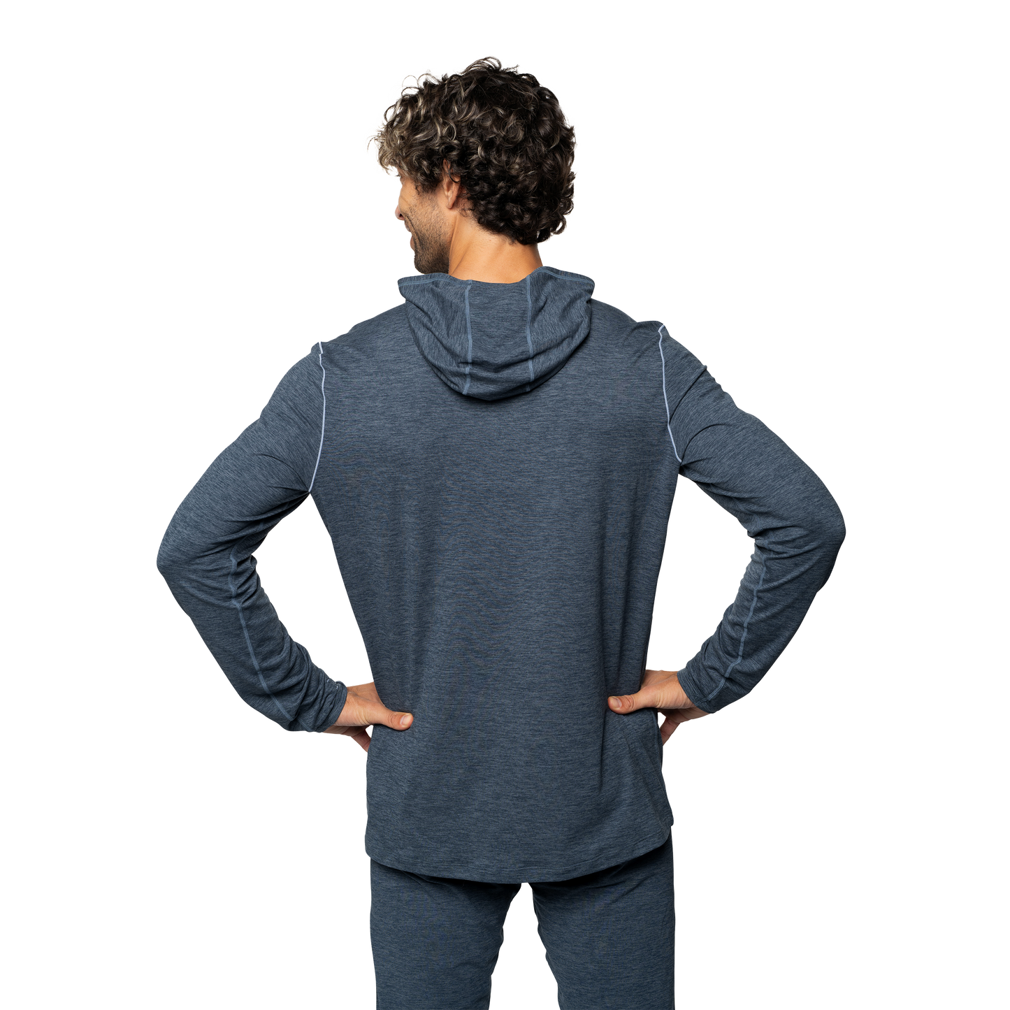 Men's thermal hoodie by Hot Chillys in dark blue, featuring a relaxed fit and back view