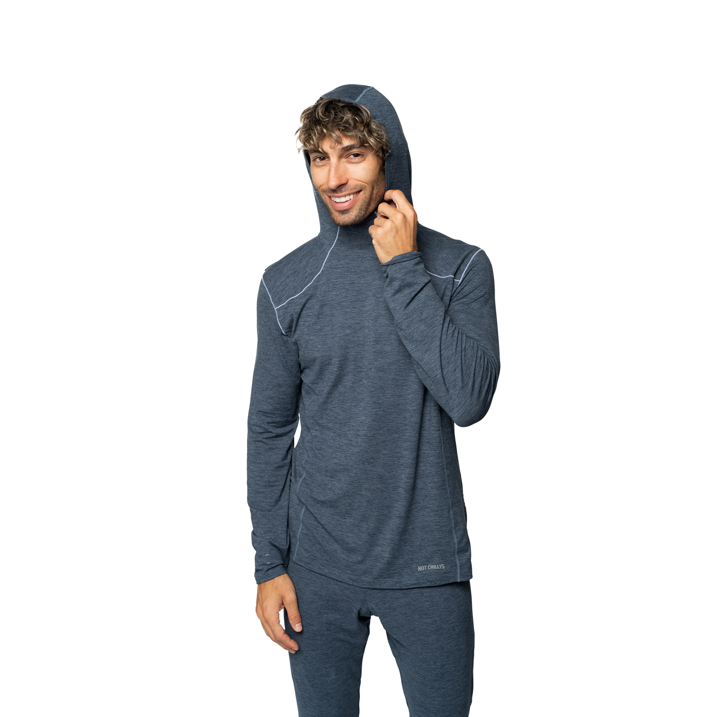 Hot Chillys Men's thermal hoodie in navy with a comfortable fit and stylish design